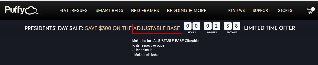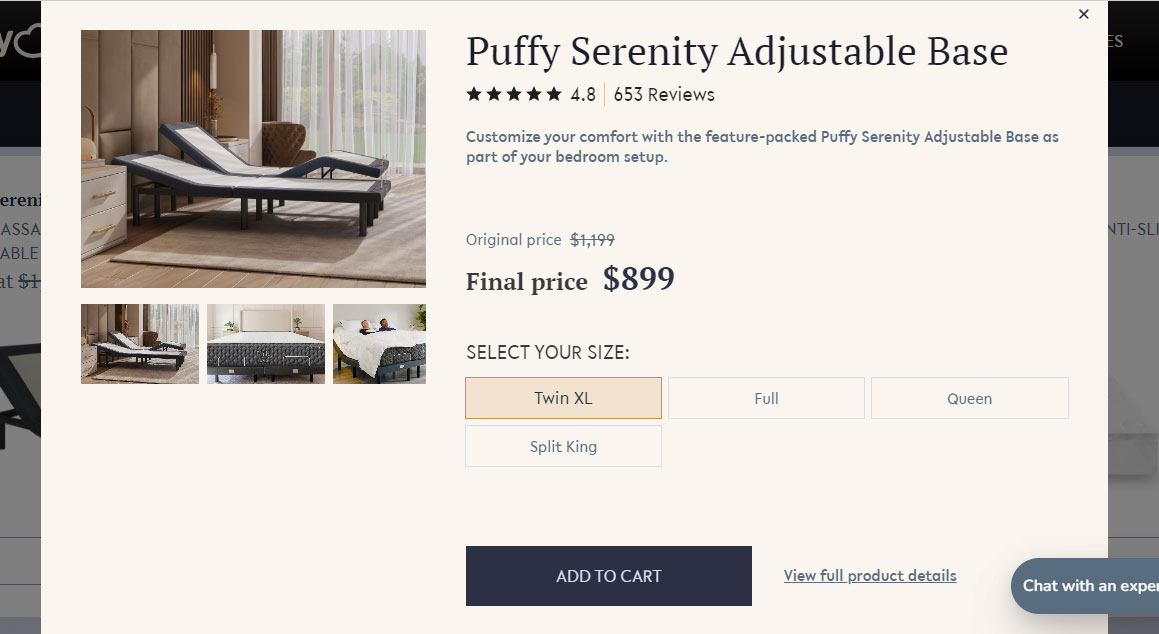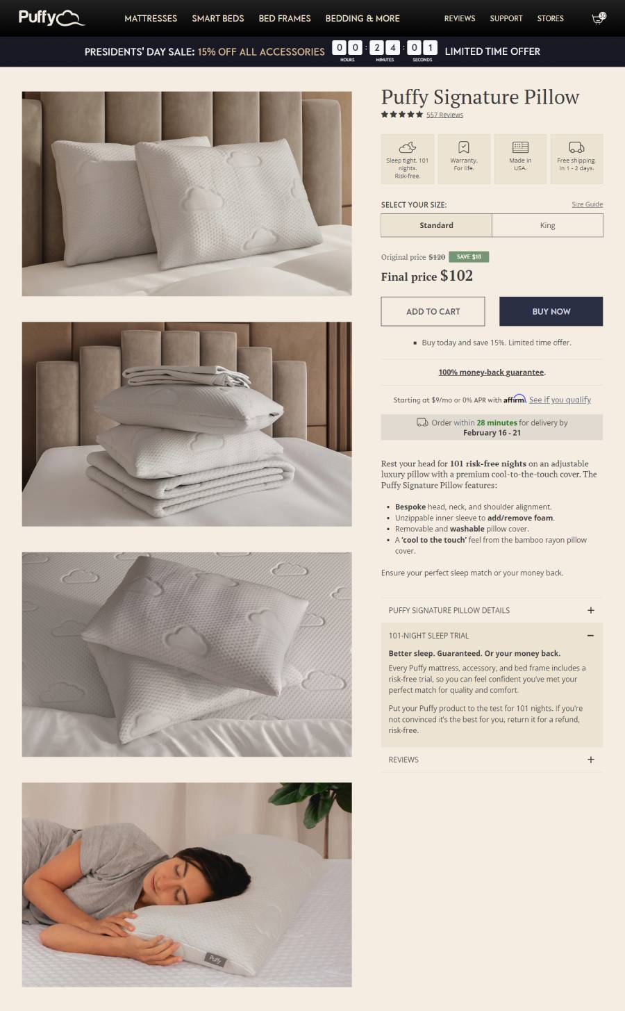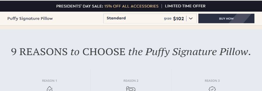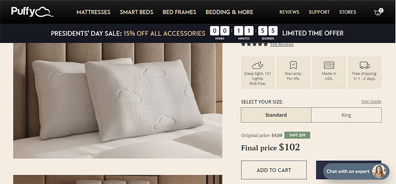 Engage users on the Puffy Product Detail Page (PDP) with these features: