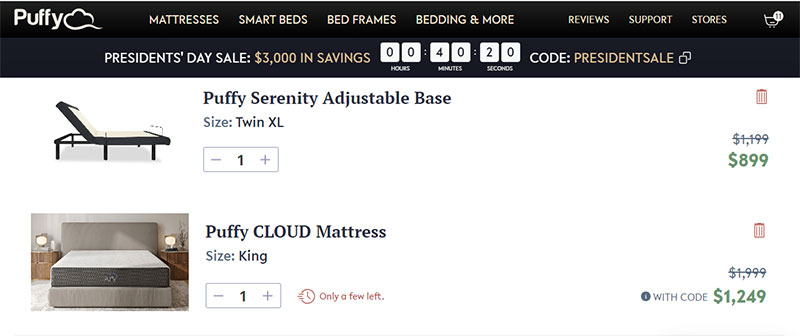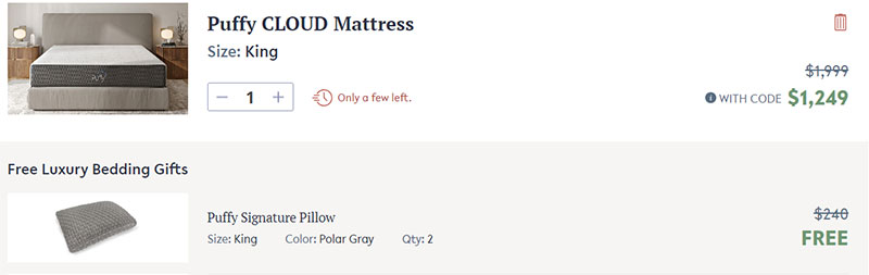 2. There is no option to increase the quantity of free items puffy is giving with mattress. As a buyer I want to increase the quantity of pilows. Puffy can charge extra amount for extra pillows. We have to solve this used case as well.